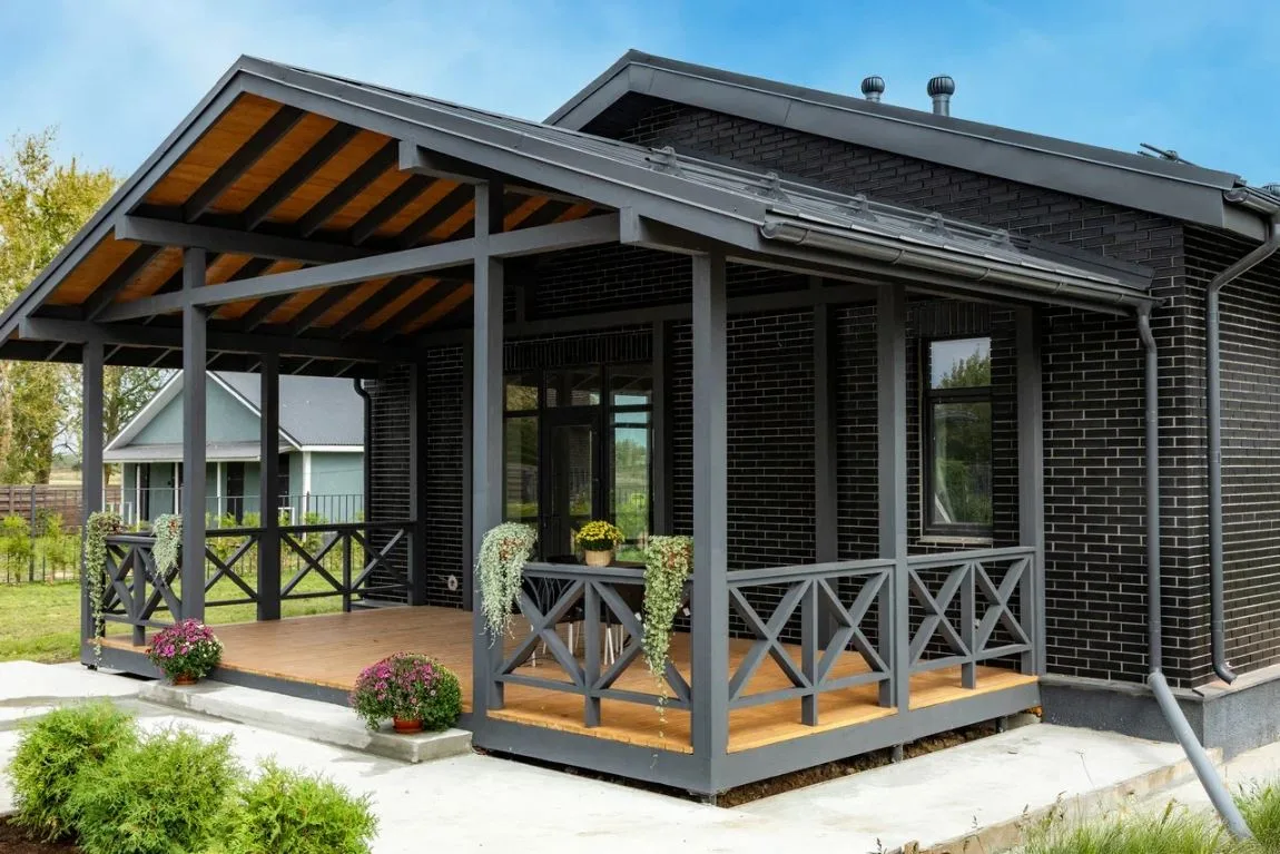 Современная европейская архитектура, все крыши фальцевые (герметичность, долговечность и эстетичный вид), матовый графит, все дома облицованы лучшим клинкерным кирпичом производства ЛСР.