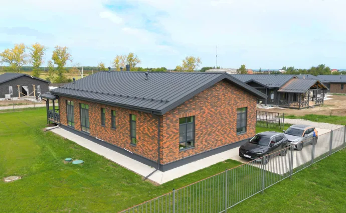 Просторный одноэтажный дом, окружённый зелёными туями и тишиной. В этом доме есть всё для комфортной жизни: три уютные спальни, большая кухня-гостиная, где можно проводить семейные ужины и встречи с друзьями, и три гардеробные комнаты, чтобы разместить все ваши вещи. Кроме того, в доме предусмотрено три санузла, что обеспечит удобство для всех членов семьи. Одноэтажная планировка делает этот дом идеальным для семей с детьми или пожилыми людьми.